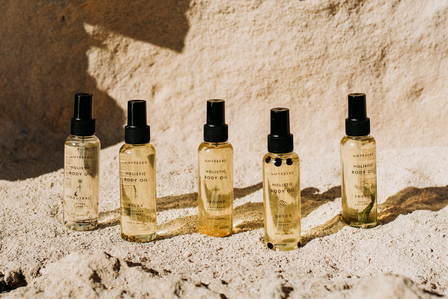 Oljorna är rika på essentiella fettsyror, vitaminer och antioxidanter som bidrar till skydda hudbarriären, återställa hudens elasticitet, återfukta och ge lyster. ´De absorberas snabbt och ger en silkeslen känsla utan att kännas feta. Oavsett om du söker djup återfuktning, uppfriskande energi eller en lugnande stund, erbjuder våra kroppsoljor ett holistiskt välbefinnande som tar hand om både kropp och själ.